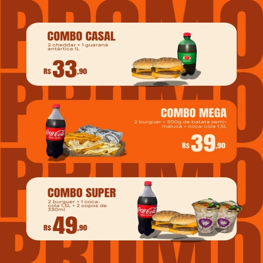 2 Burguer + 500g de batata frita + convenção 2 litros.
