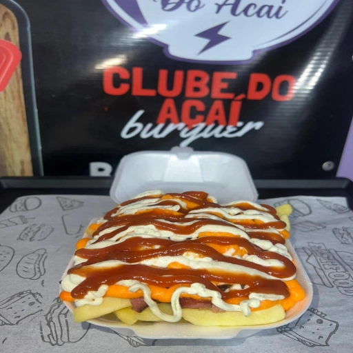 600g de batata frita, bacon, calabresa, queijo muçarela, cheddar cremoso, queijo ralado, maionese temperada e ketchup.